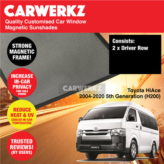 Customised Window Magnetic Sunshades for Toyota HiAce 2004-2020 5th Generation (H200) Japan Commercial Van