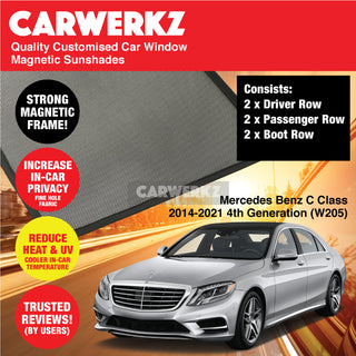 Customised Window Magnetic Sunshades for Mercedes Benz C Class 2014-2021 4th Generation (W205) Germany Sedan