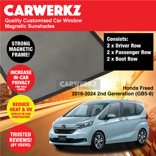 Customised Window Magnetic Sunshades for Honda Freed 2016-2024 2nd Generation (GB5 GB6 GB7 GB8) Japan MPV