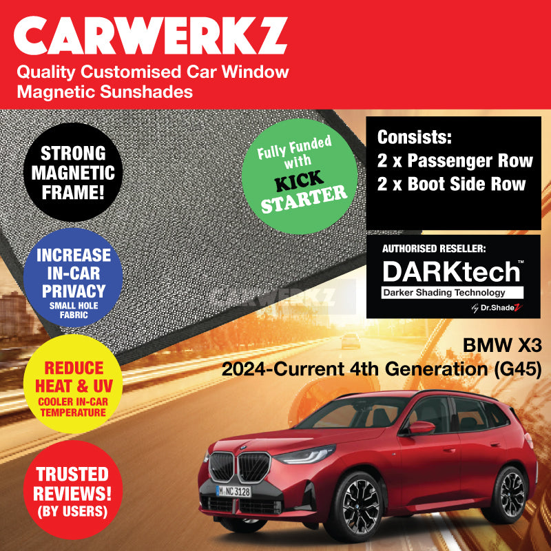 Dr Shadez DARKtech BMW X3 2024-Current 4th Generation (G45) Customised Germany Luxury Mid size SUV Window Magnetic Sunshades Side Windows
