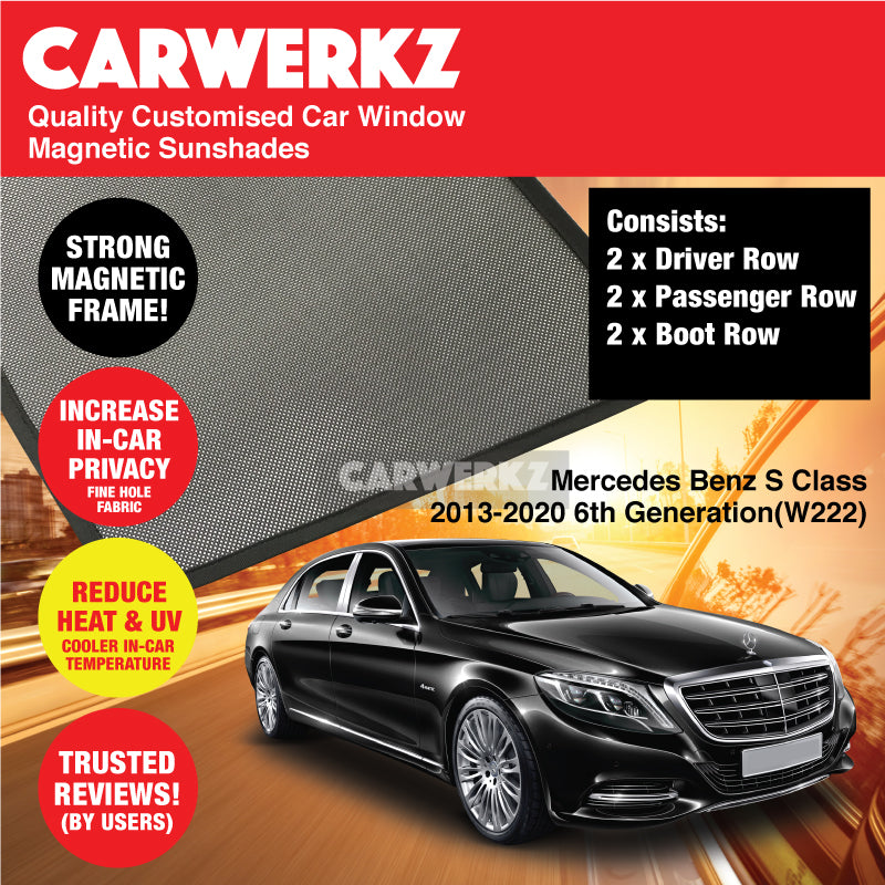 Customised Window Magnetic Sunshades for Mercedes Benz S Class 2013-2020 6th Generation (W222) (Short Wheel Base) Germany Sedan