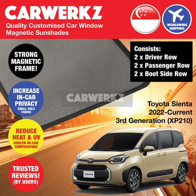 Customised Window Magnetic Sunshades for Toyota Sienta 2022-Current 3rd Generation (XP210) Japan Hybrid MPV