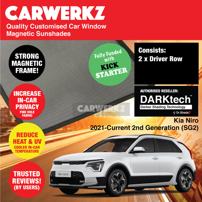 Dr Shadez DARKtech Kia Niro 2021-Current 2nd Generation (SG2) Korea Hybrid Hatchback Customised Window Magnetic Sunshades