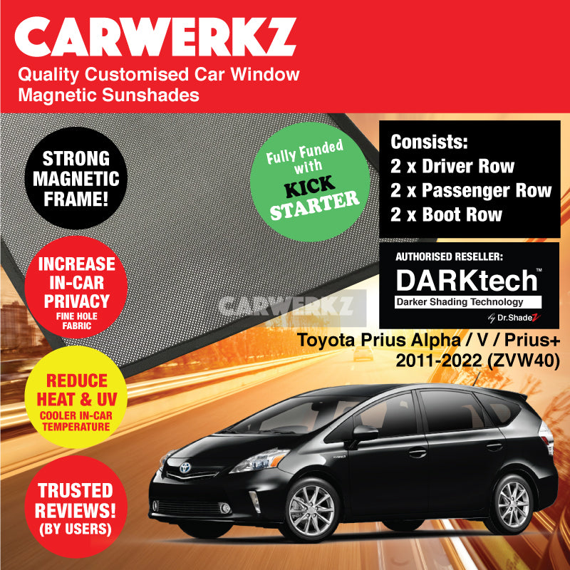 Dr Shadez DARKtech Toyota Prius Alpha Prius V Prius+ 2011-2022 3rd generation (ZVW40) Japan Hybrid MPV Customised Window Magnetic Sunshades