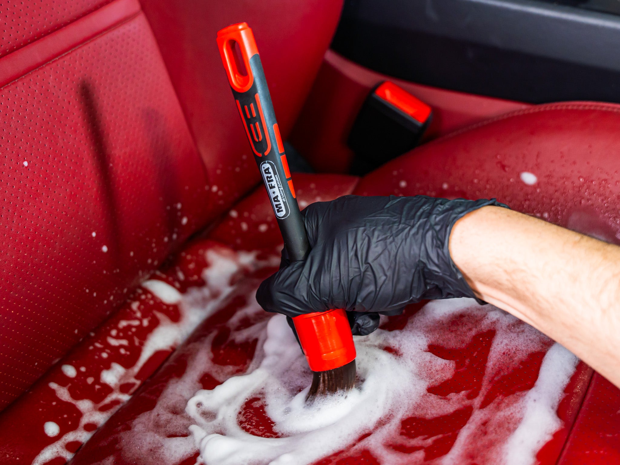 Leather Cleaner is much more than just a leather interior cleaner: it is a complete, professional system, designed to deliver visible results, a natural feel to the touch, and a precise, safe user experience. Developed by Maniac Line for enthusiasts and demanding detailers, it combines an advanced formulation, smart delivery system, and application versatility. All this, without the need for dilution or external tools.
